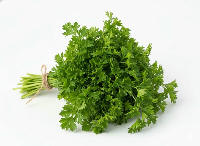 Un bouquet de persil (plat ou frisé), l’une des herbes aromatiques les plus polyvalentes. Il ajoute une touche de fraîcheur et de couleur à tous les plats, des omelettes aux sauces, en passant par les marinades et les vinaigrettes.